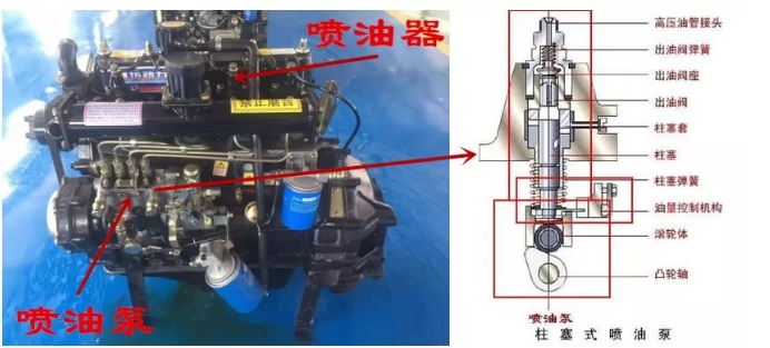首先來看看第一個(gè)渠道。柴油機(jī)在正常工作時(shí),通過安裝在氣缸蓋上的噴油器將柴油定時(shí)、定量、定壓的噴入燃燒室中,然后發(fā)火燃燒,產(chǎn)生高溫高壓的氣體推動(dòng)活塞向下運(yùn)動(dòng)做功,也可以說,噴入燃燒室中的柴油是完全燃燒成廢氣了。