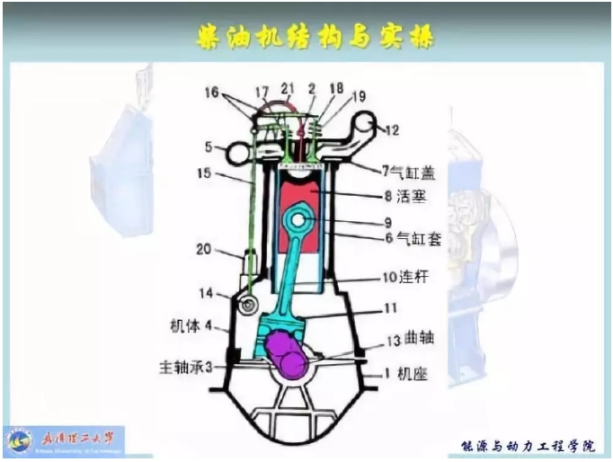 首先來看看第一個(gè)渠道。柴油機(jī)在正常工作時(shí),通過安裝在氣缸蓋上的噴油器將柴油定時(shí)、定量、定壓的噴入燃燒室中,然后發(fā)火燃燒,產(chǎn)生高溫高壓的氣體推動(dòng)活塞向下運(yùn)動(dòng)做功,也可以說,噴入燃燒室中的柴油是完全燃燒成廢氣了。